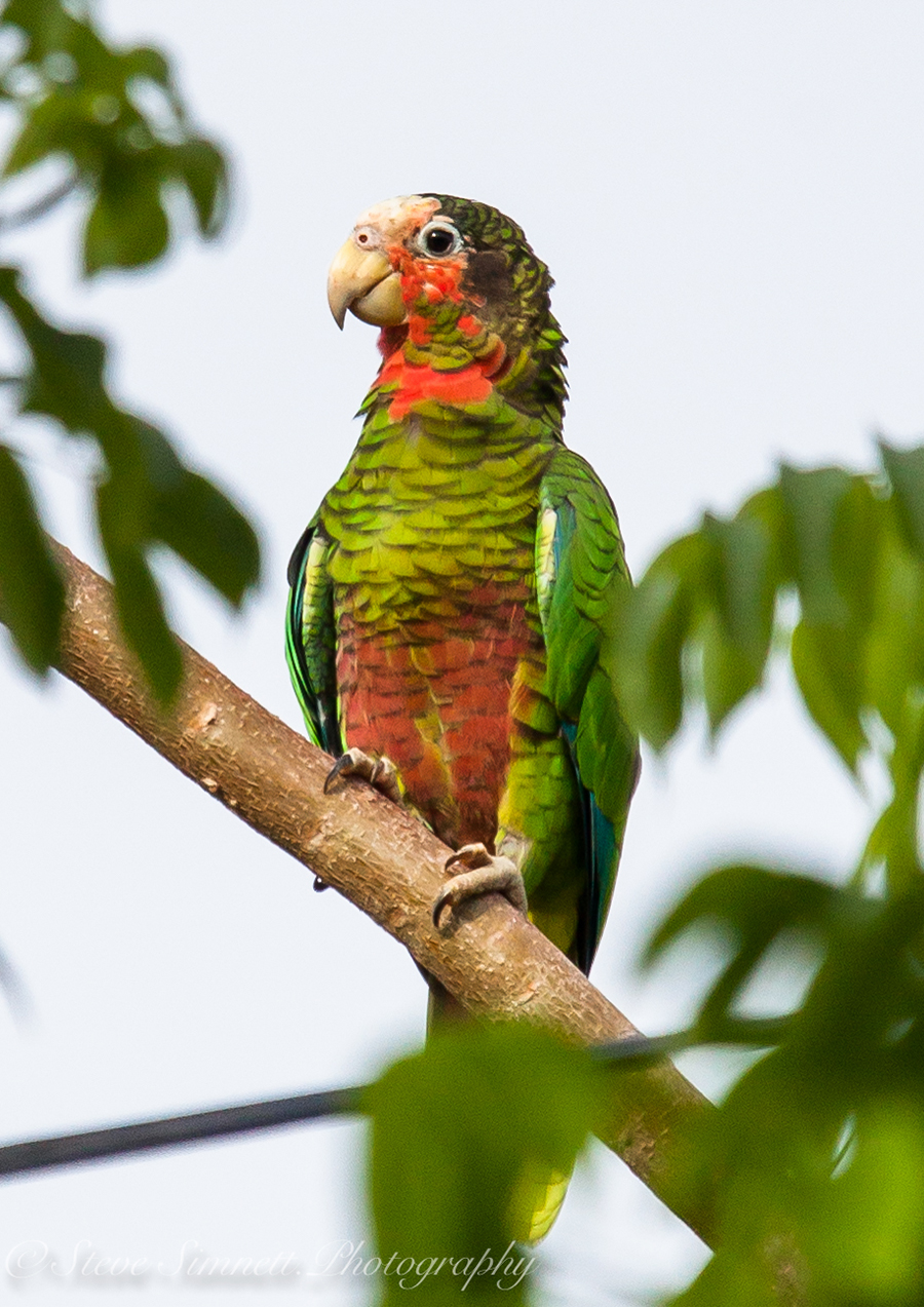 “Cayman Parrot,” A. l. hesterna, showing patchy pink on the throat and extensive maroon on the belly. (Cayman Brac.) © Steve Simnett